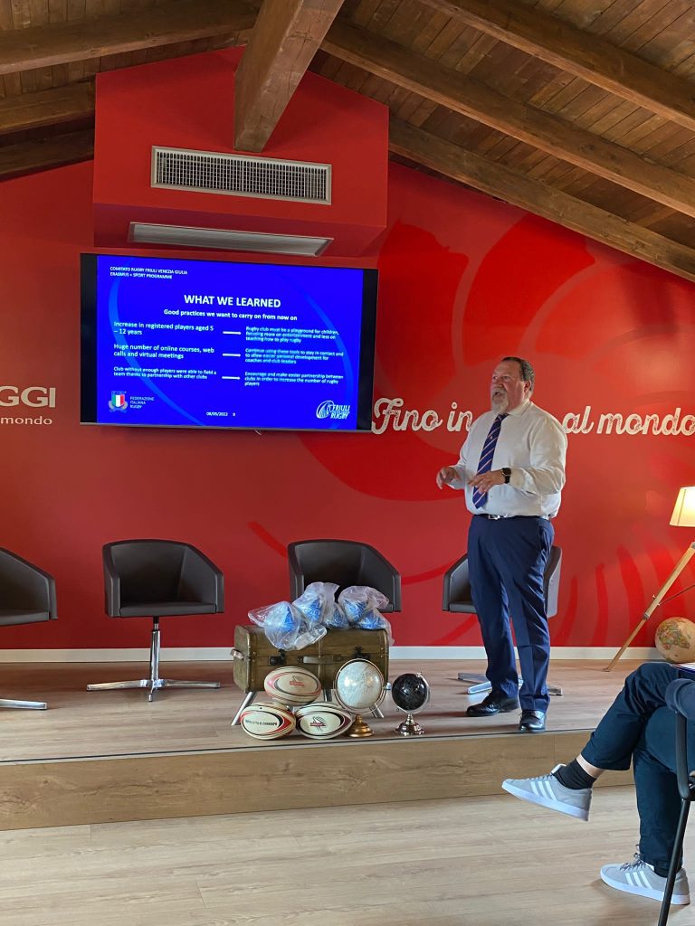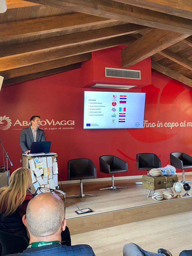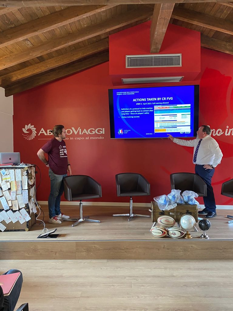 On 9th May 2022. beneficiaries of the project held a 4th mobility visit/meeting which is part of Erasmus+ project. in a full day visit to the rugby club OverBugLine, the partners used the morning to watch the children’s rugby tournament, hosted by the organizer, and even better acquaintance, exchange of knowledge and experiences. After the tournament, the partners toured the host’s premises and went to lunch together. The main part of the meeting was held in the city center where the partners presented their part of the handbook and after that a SWOT analysis of the hosts was conducted. The rest of the time was used to plan the final conference and arrange the date of the final meeting.